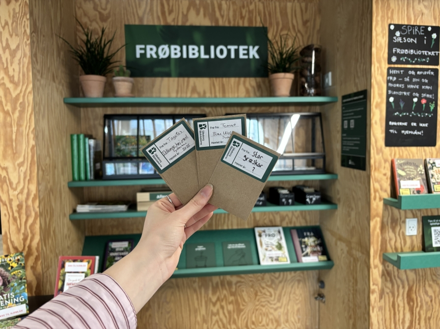 Du finder vores frøbibliotek tæt ved indgangen i CampusHuset.